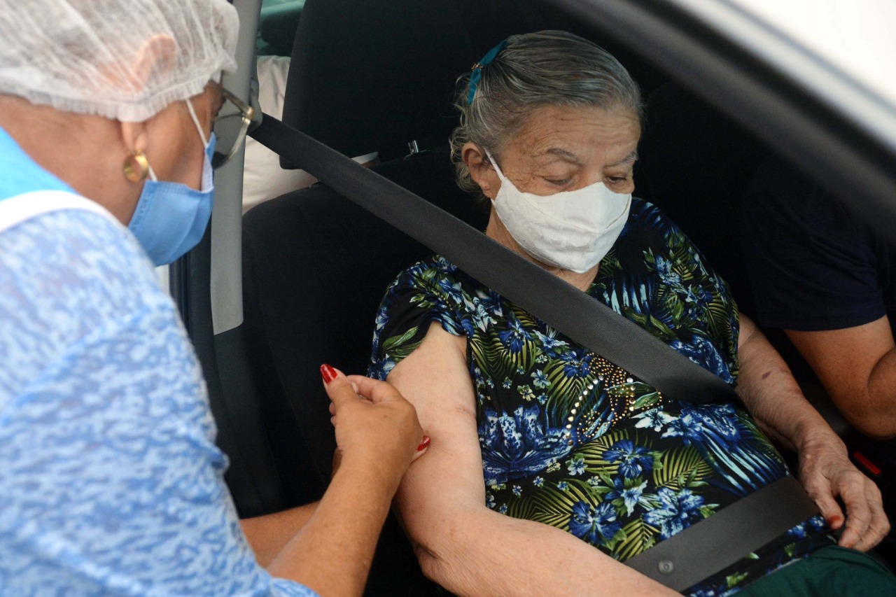 Dona Maria de Lourdes Ferraz tem 100 anos e trabalhou por muito tempo como enfermeira na Capital. Ela mora no bairro do Centro e foi uma das pessoas com mais de 90 anos vacinadas neste sábado (13) em mais uma ação realizada pela Prefeitura Municipal de João Pessoa (PMJP) na campanha de vacinação contra Covid-19. Desta vez, a Secretaria Municipal de Saúde (SMS) montou dois pontos de drive thru em shoppings, um no bairro de Mangabeira e outro no de Manaíra, onde dona Maria de Lourdes recebeu a dose do imunizante. Entre a quarta-feira (10), quando se iniciou a vacinação no sistema drive thru, até esta sexta-feira (12) foram vacinadas 1.943 pessoas no Centro de Convenções, 2.728 no Ronaldão e 1.453 no Aeroclube, totalizando 6.124 pessoas imunizadas.