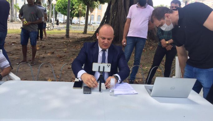 O deputado estadual Cabo Gilberto (PSL) foi mais uma vez à praça dos Três Poderes na manhã de hoje em protesto ao fato de não poder entrar no prédio da Assembleia Legislativa da Paríba para participar da sessão ordinária. A diferença em relação a ontem é que o parlamentar montou uma espécie de gabinete no local, onde participou de maneira remota dos trabalhos legislativos.