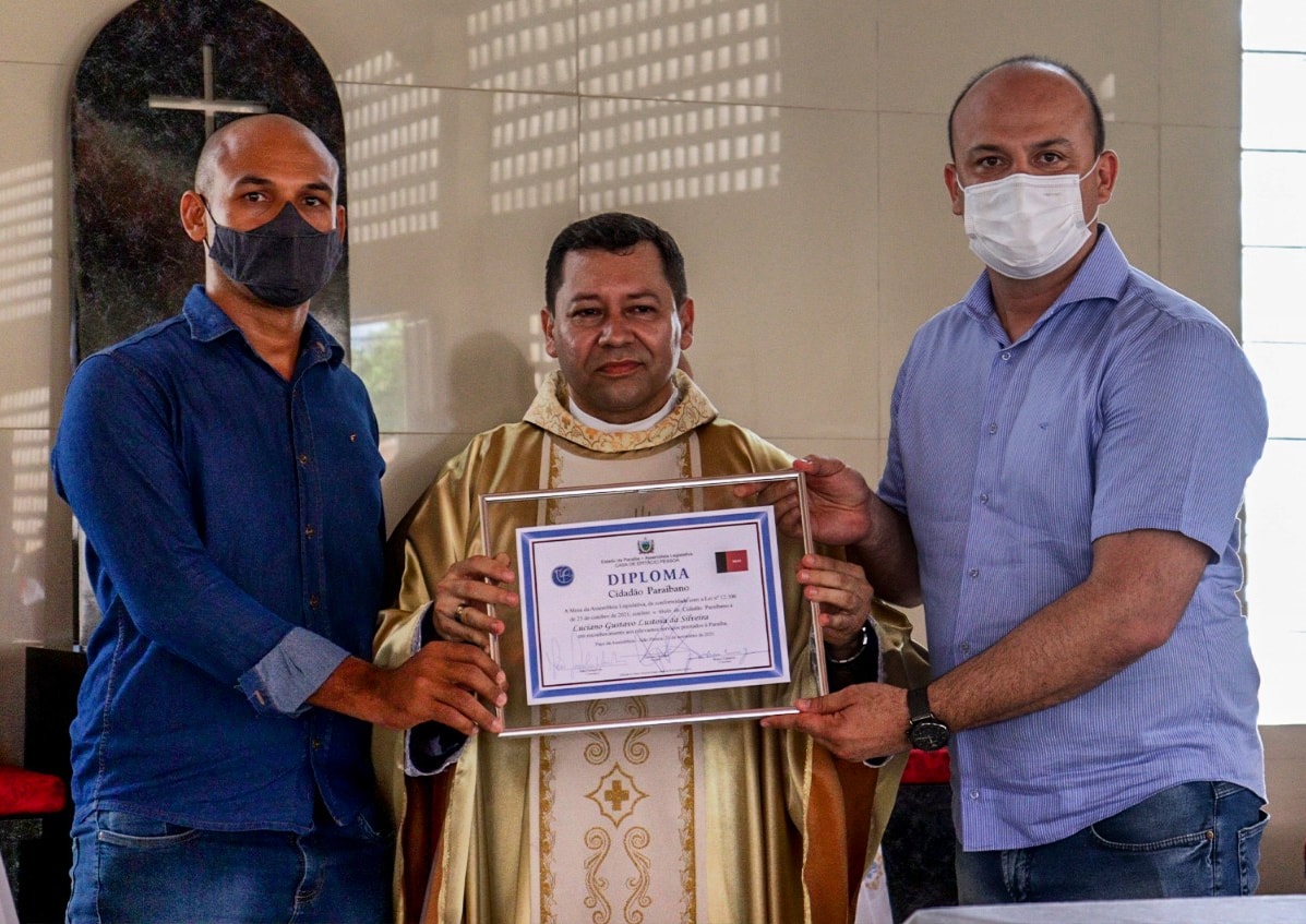 A Lei 12.106/21, de autoria do deputado estadual Cabo Gilberto Silva, foi aprovada por unanimidade na Assembleia Legislativa do Estado. Também foi cabo Gilberto quem passou o certificado do Título ao padreLuciano, ladeado pelo presidente da Associação de Imprensa do Litoral Sul da Paraíba (Assim), o jornalista Eudes Santiago.
