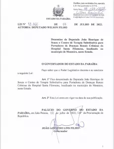 O Centro de Hemodiálise foi nomeado de Deputado João Henrique, através do projeto de lei 12.366 de autoria do deputado estadual Wilson Filho, sendo sancionado pelo governador João Azevêdo no ano passado.