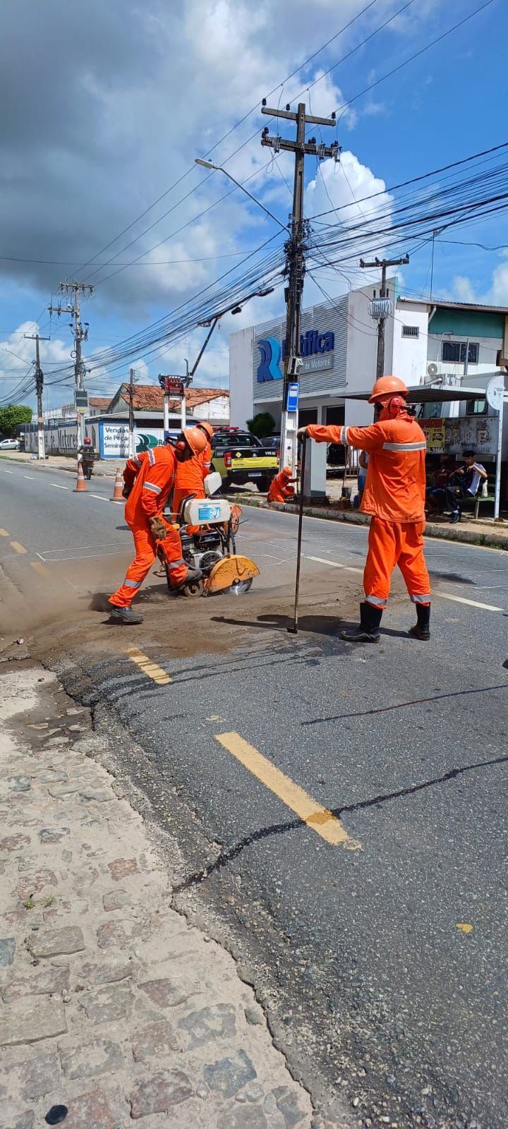 Foram feitas também Sinalização Horizontal: faixas de pedestre, eixos central, legendas, setas, canalização e lombadas.