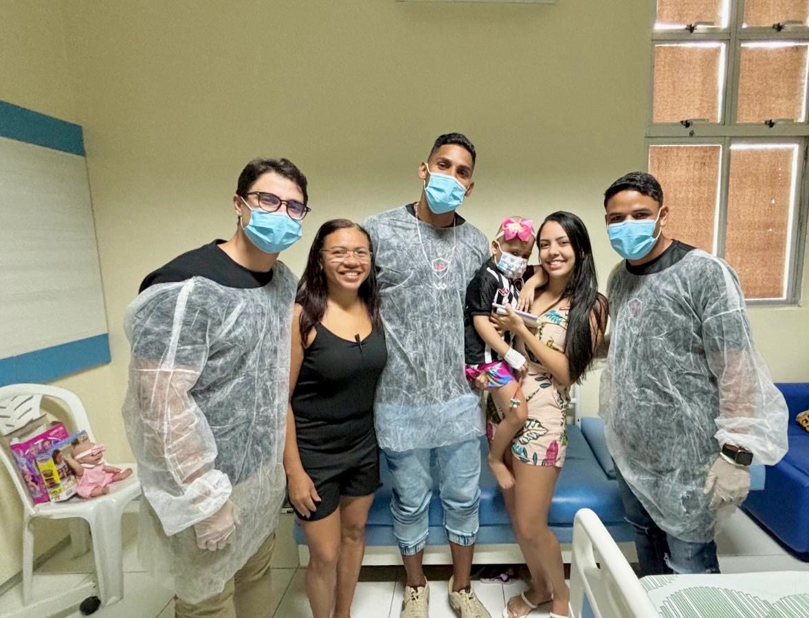 A mãe da pequena guerreira relata que a surpresa de hoje foi incrível. “Maria ficou realizada e muito feliz com a visita de quem representa o time que ela tanto torce e ama. Muito bom receber essa atenção e carinho. Semana passada a assessoria do Laureano conseguiu um vídeo de Zé Vaqueiro mandando beijo para ela e hoje a vinda desses jogadores ajudam bastante a amenizar as lutas que ela enfrenta nesse tratamento e impulsiona ainda mais ela a lutar bravamente pela cura. Só temos que agradecer a esse hospital por nos proporcionar alegrias diante das nossas batalhas”, agradece a mãe da garotinha, Ana Lívia Pontes.