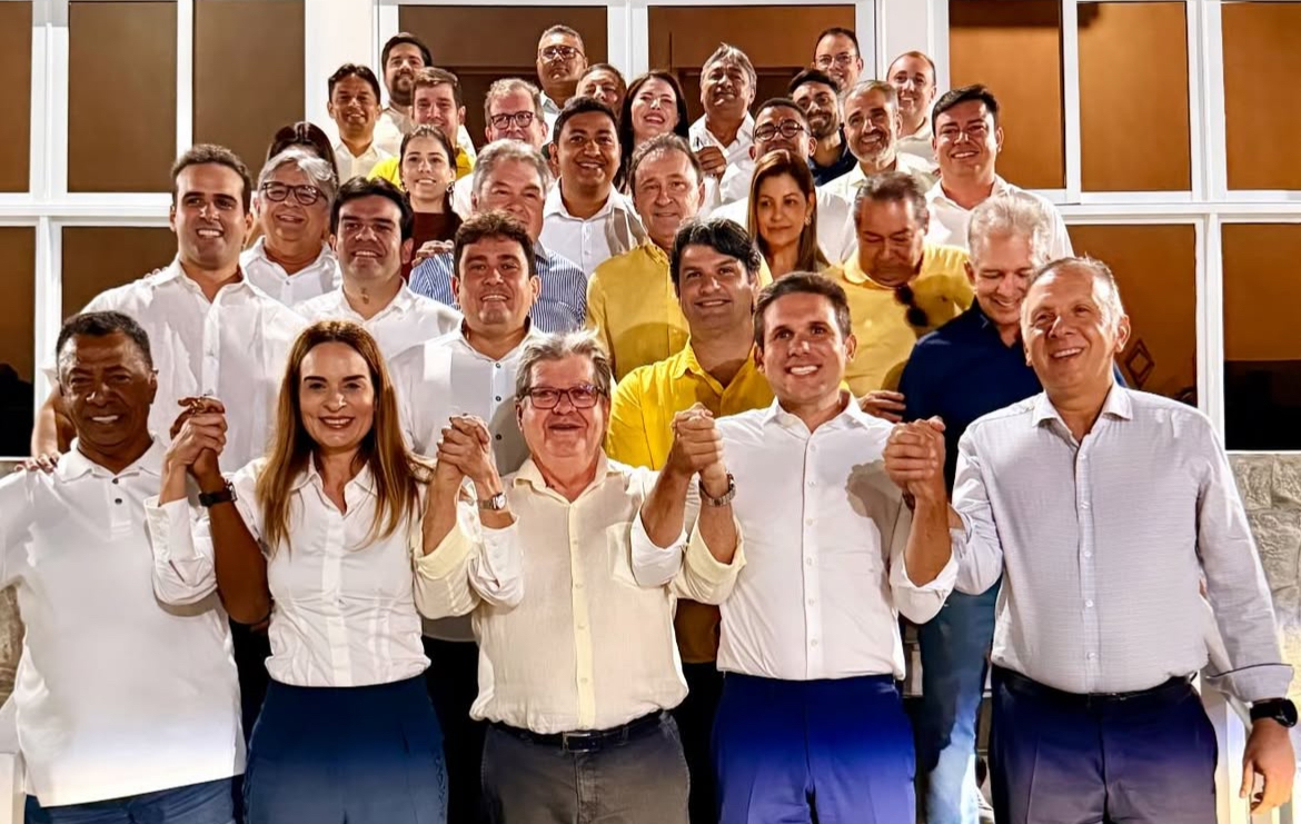 Na foto, Azevêdo aparece ao centro, de mãos dadas com lideranças de diversos partidos que compõem a base de seu governo, em clima de visível entrosamento e força política. O gesto de levantar as mãos, compartilhado entre os principais nomes da aliança, simboliza não apenas apoio ao governador, mas também um pacto de continuidade do grupo no cenário político estadual.