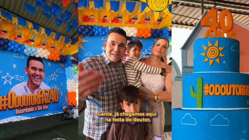 O aniversário de 40 anos do médico Dr. Jhony Bezerra, diretor-superintendente da Fundação PBSaúde, movimentou a cena política paraibana neste sábado (6), em Campina Grande. A festa, batizada de #ODoutorFaz40 – Recordando o São João, aconteceu na Cidade São João (antigo Vale do Jatobá) e reuniu amigos, admiradores e lideranças de peso do estado.