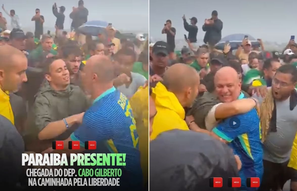 Por meio das redes sociais, o parlamentar paraibano divulgou um vídeo do momento em que encontra Nikolas durante a mobilização, realizada sob chuva e acompanhada por apoiadores. Na publicação, Cabo Gilberto afirmou que integra o movimento em defesa de “justiça e liberdade”.